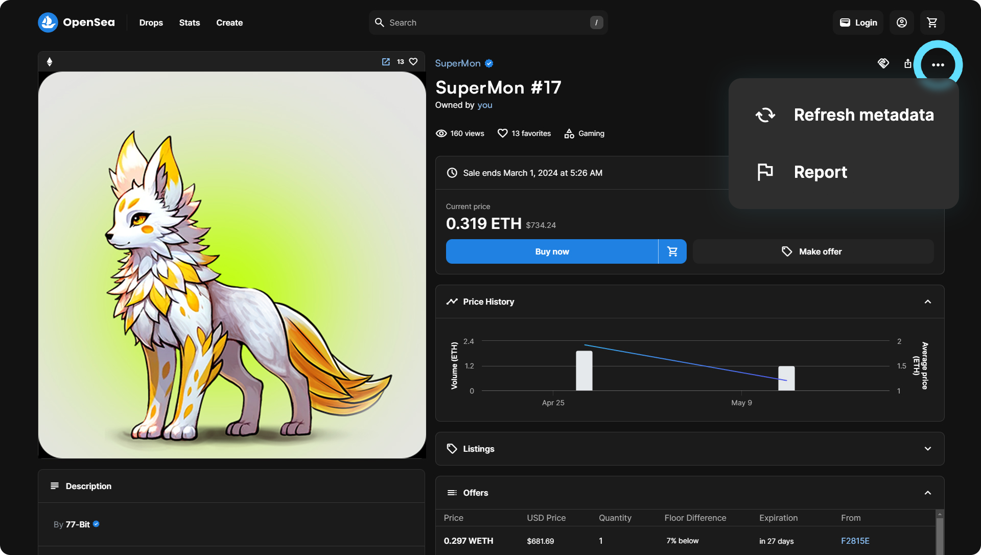 Wallets and NFT websites typically cache metadata to optimize performance, this can affect the visibility of updates to dynamic NFTs. While OpenSea offers a feature for users to manually request metadata refreshes, not all platforms provide this level of control. When building dynamic NFT projects, make sure to thoroughly test and understand the implications of caching on your platform.
